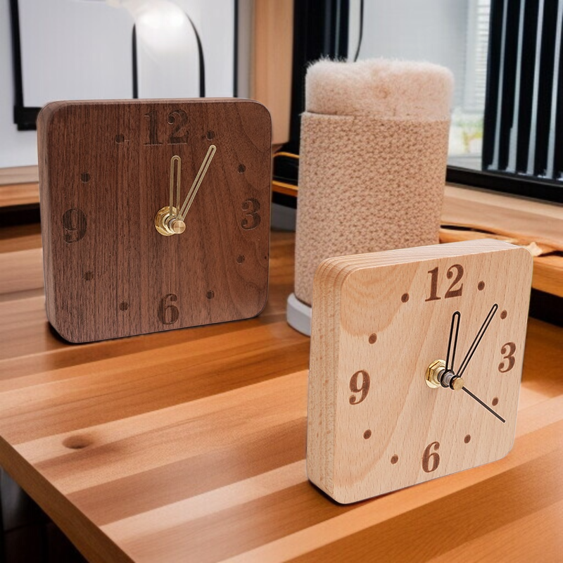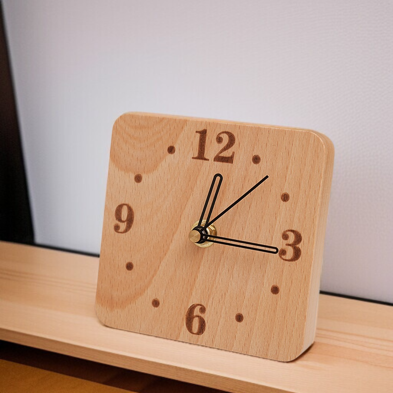 北欧風のシンプルな卓上時計、天然無垢材の静音木製時計、寝室のベッドサイド時計